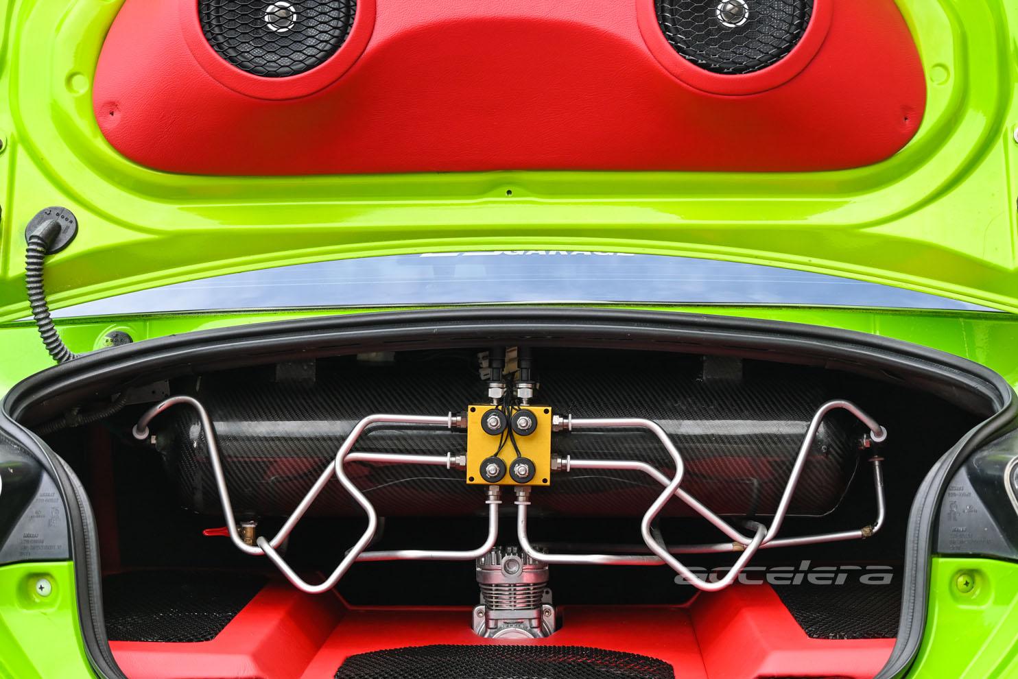 Terpasang juga sistem suspensi udara besutan Air Pride buatan Art Custom Works plus coilover custom, membuat mobil ini tidak hanya enak dipandang, namun juga nyaman digunakan.